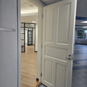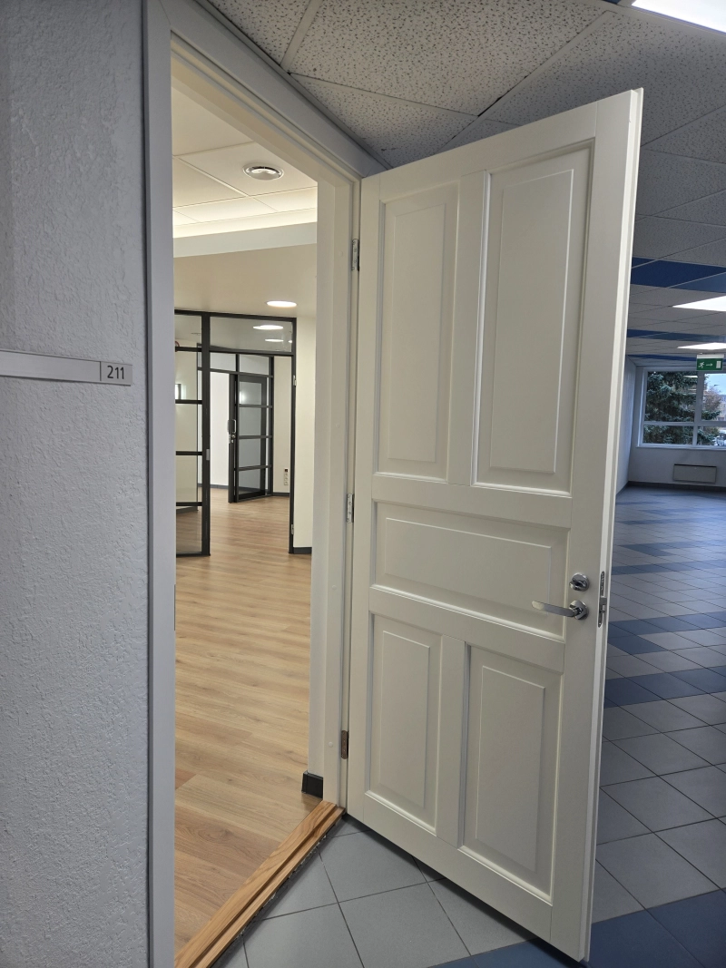 Ruum 211 asub ABT administratiivhoone II korrusel vaatega maja ees olevale parkimisplatsile.